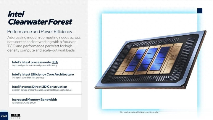 据Hot Chips 2025大会8月26日披露信息,英特尔正式详解下一代至强能效核处理器“Clearwater Forest”,这款计划明年量产的芯片,一口气塞进Intel 18A先进制程、Foveros Direct 3D封装两大黑科技,单路核心数飙到288个,还能兼容上代插槽,DDR5内存频率也从6400MT/s提至8000MT/s,一亮相就搅动了全球服务器芯片市场。